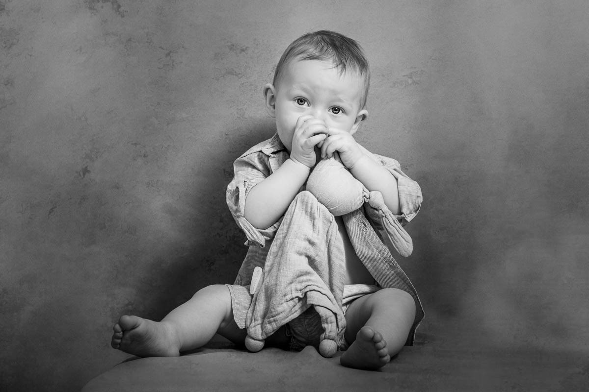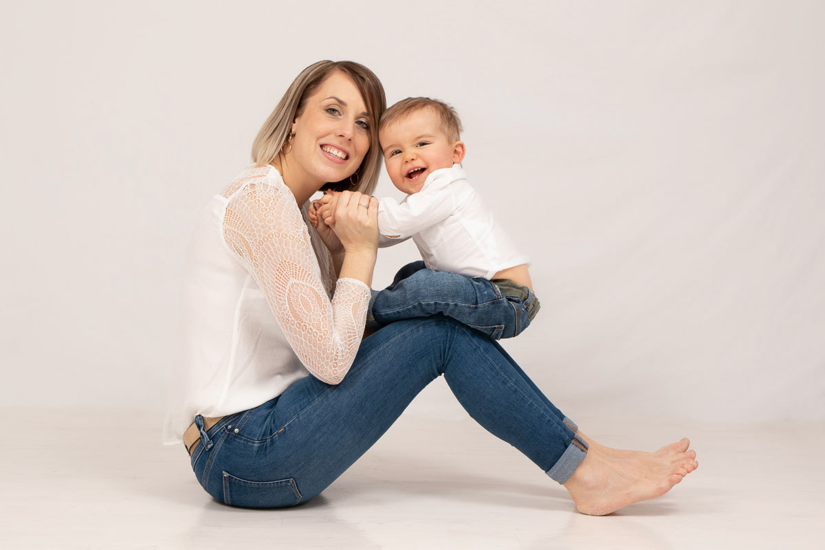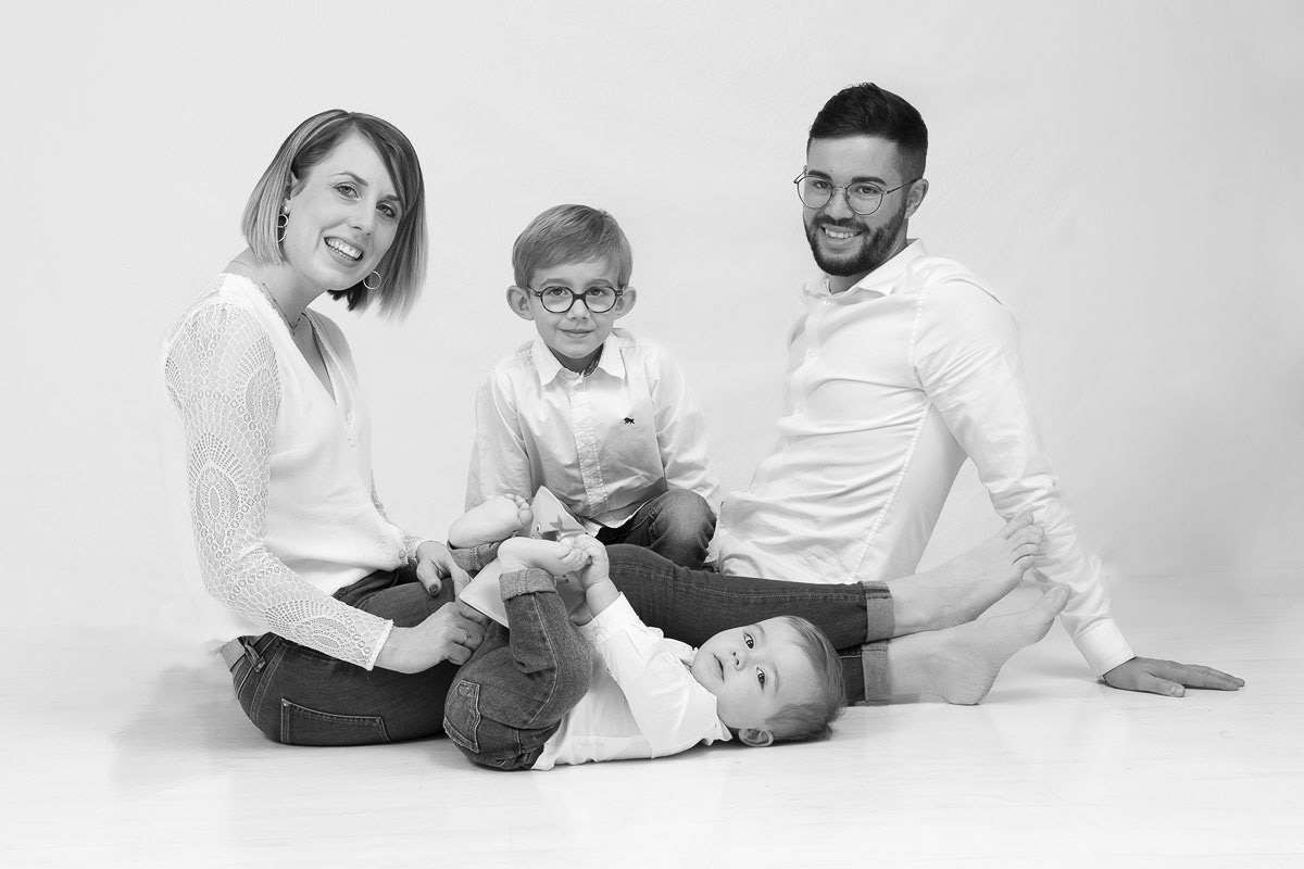 La séance famille avec votre grand bébé se fait chez moi dans l'intimité de mon studio photo.