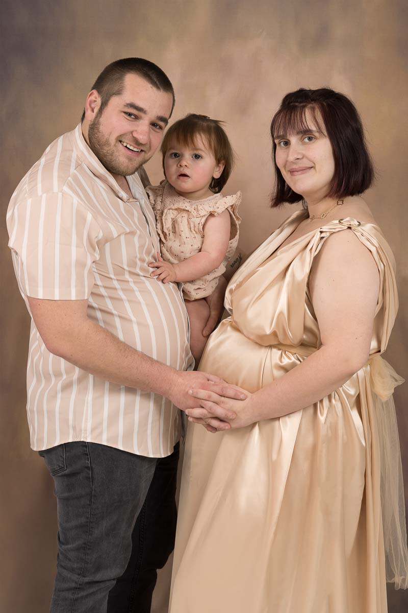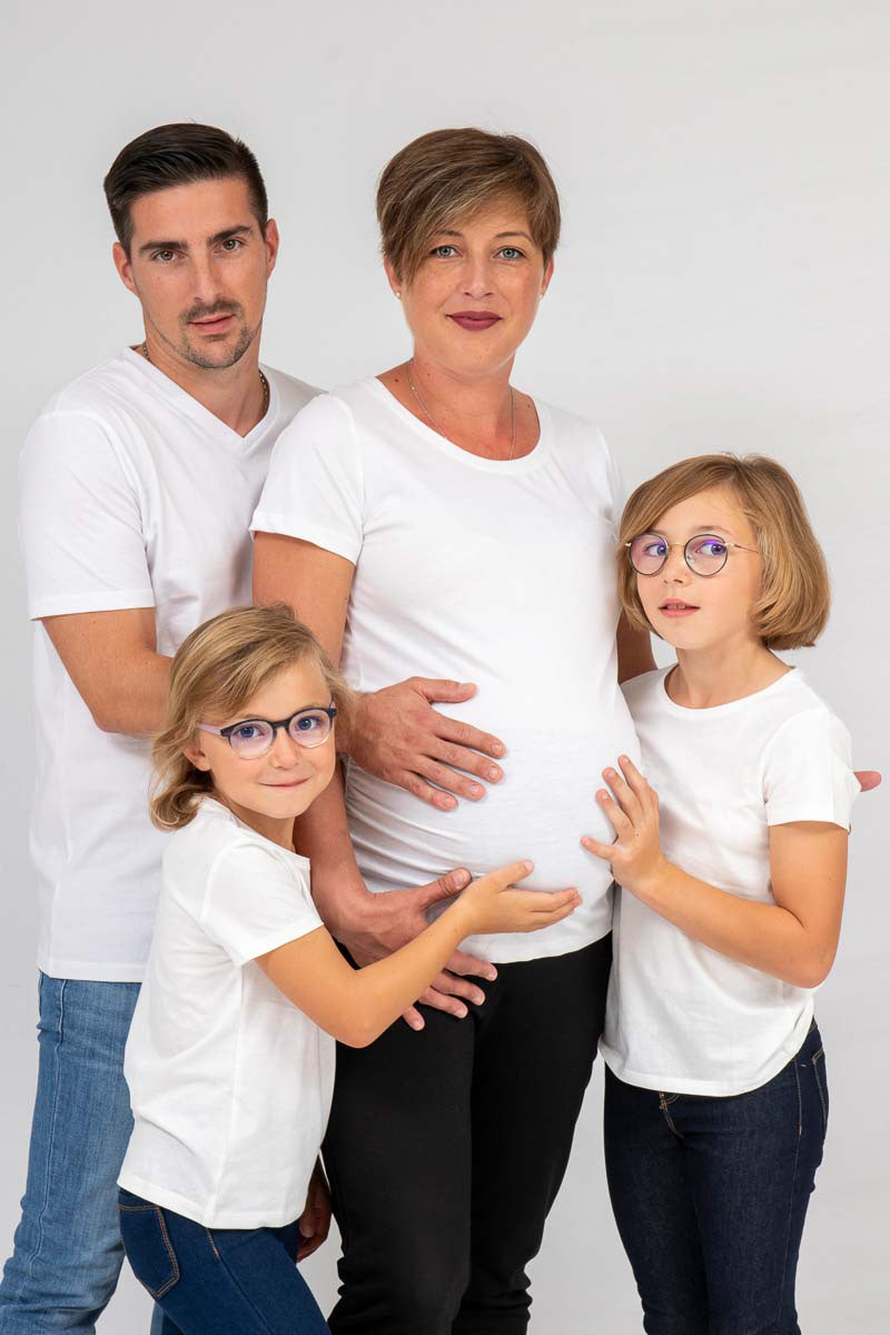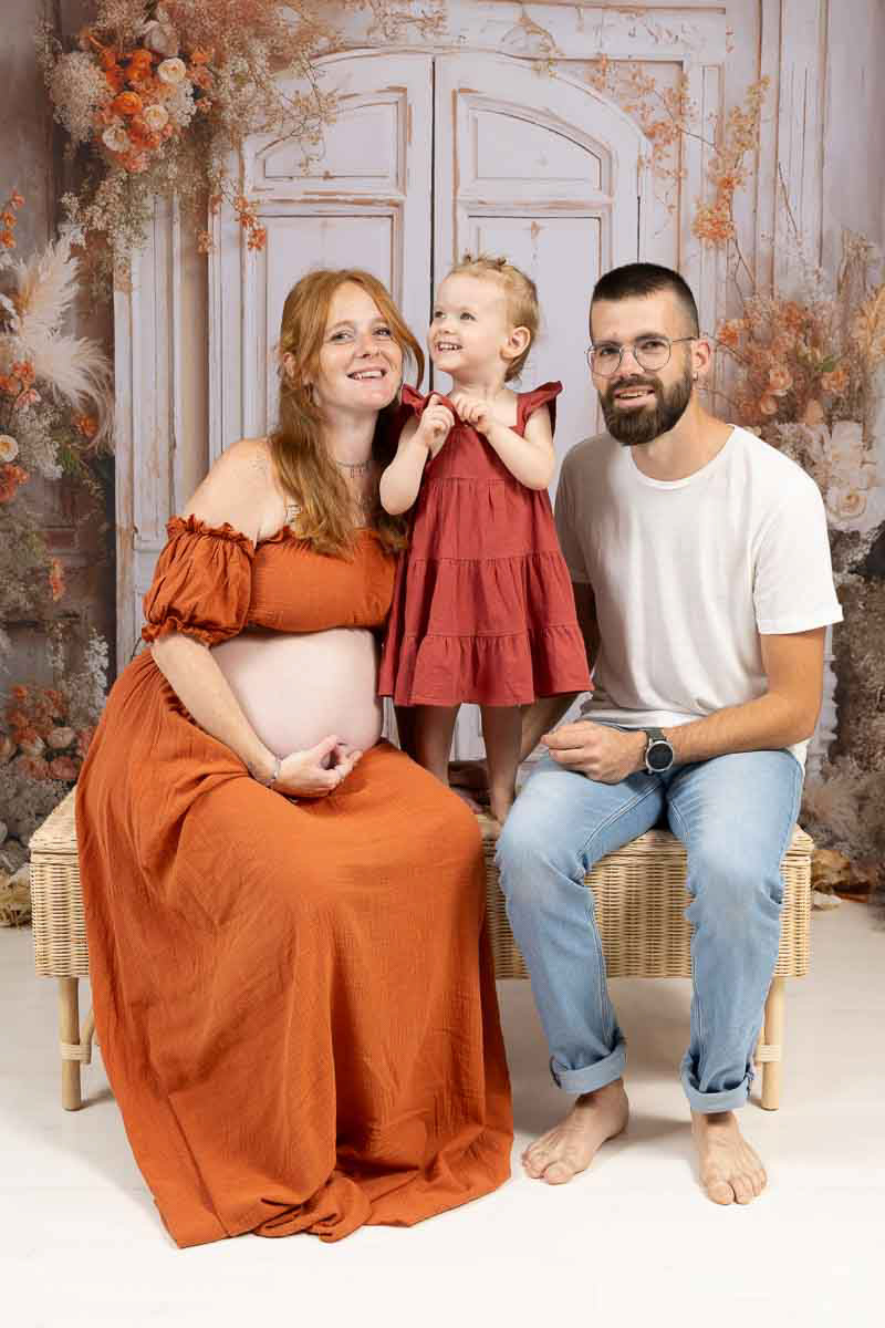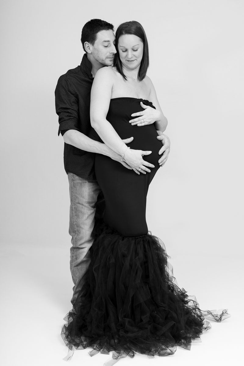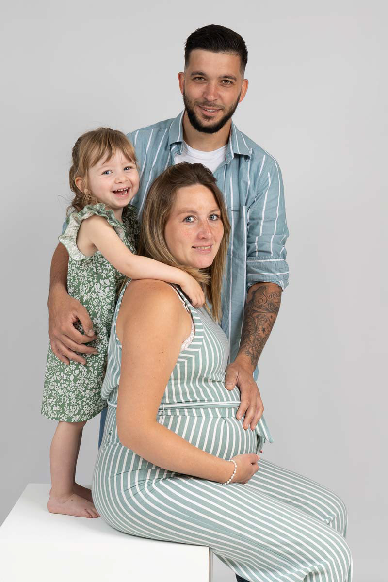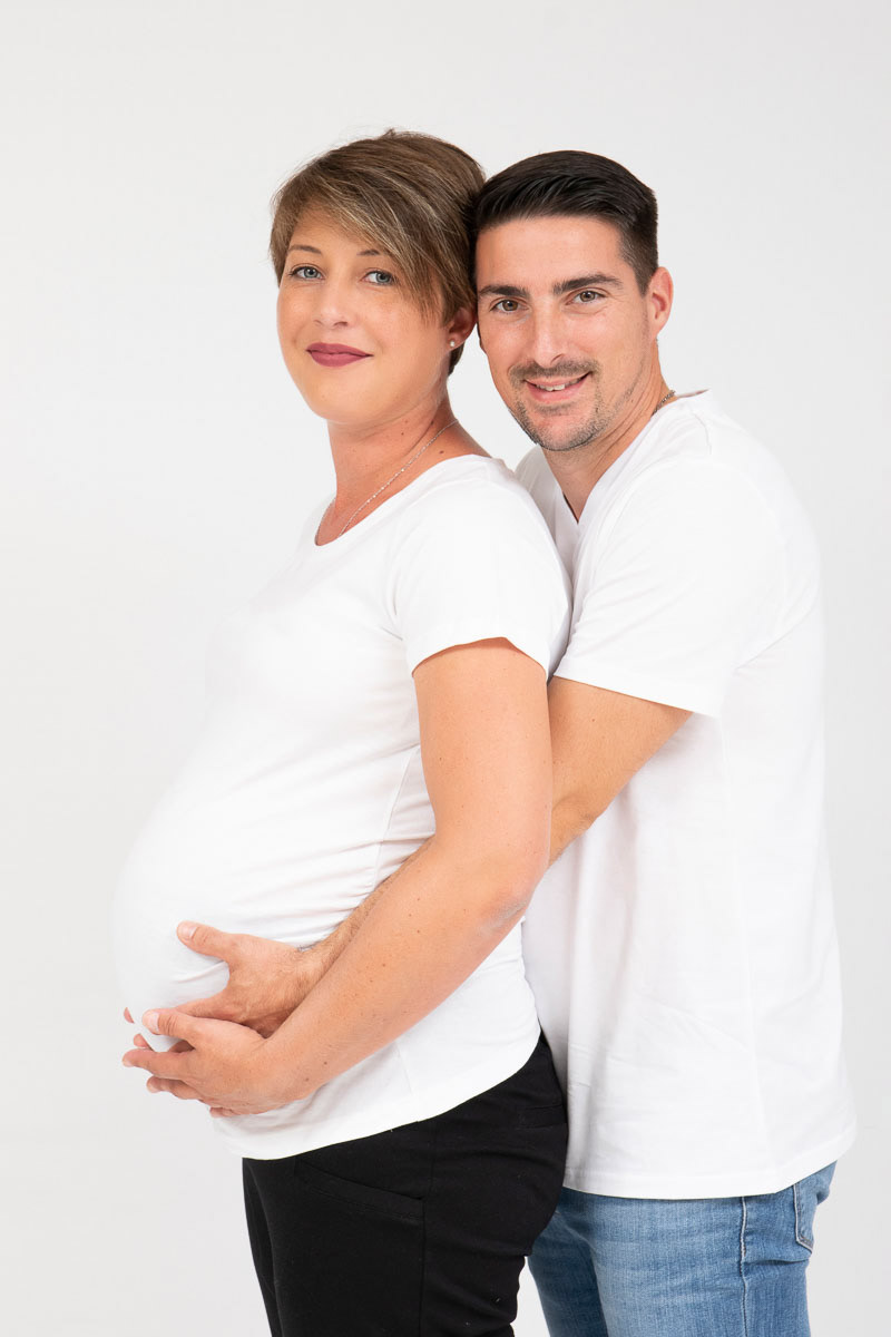 Le forfait séance future maman comprend les portraits seule, en couple et avec vos enfants.