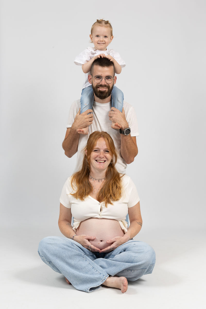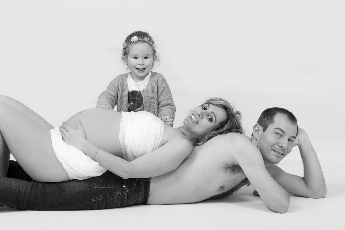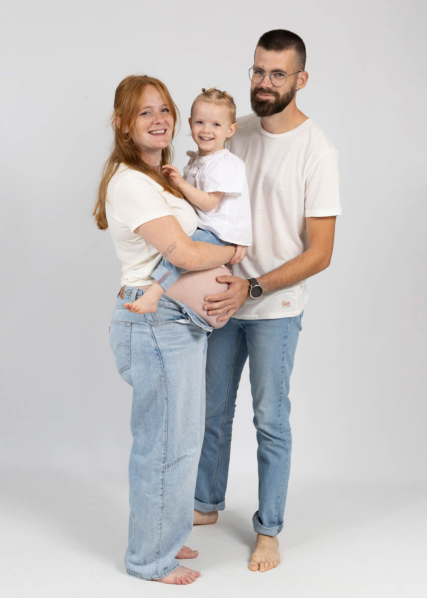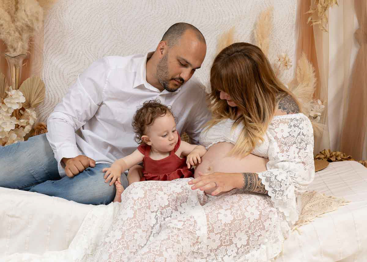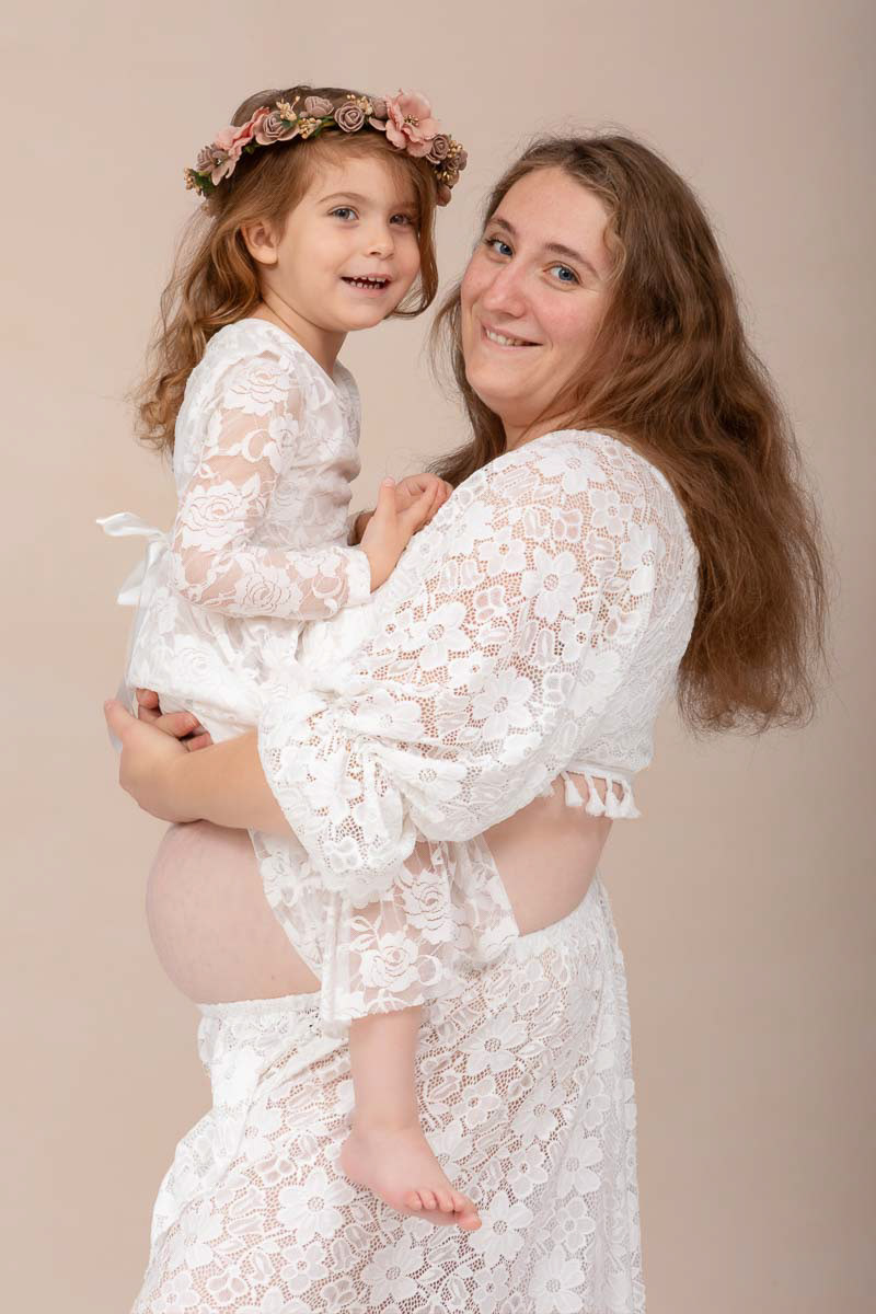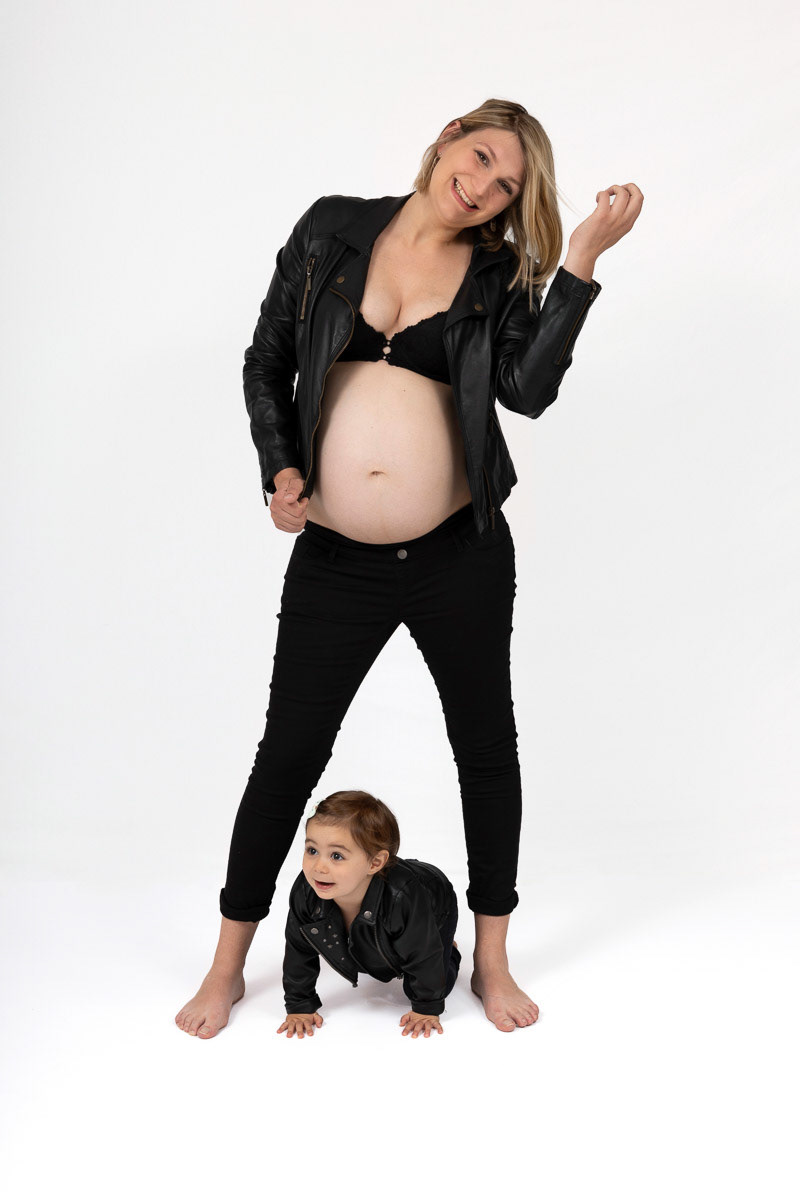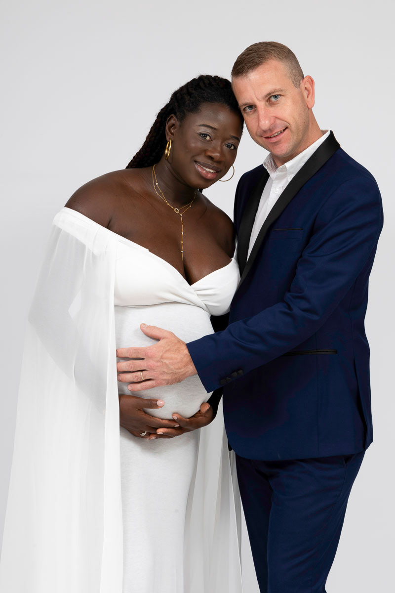 Le forfait séance future maman comprend les portraits seule, en couple et avec vos enfants.