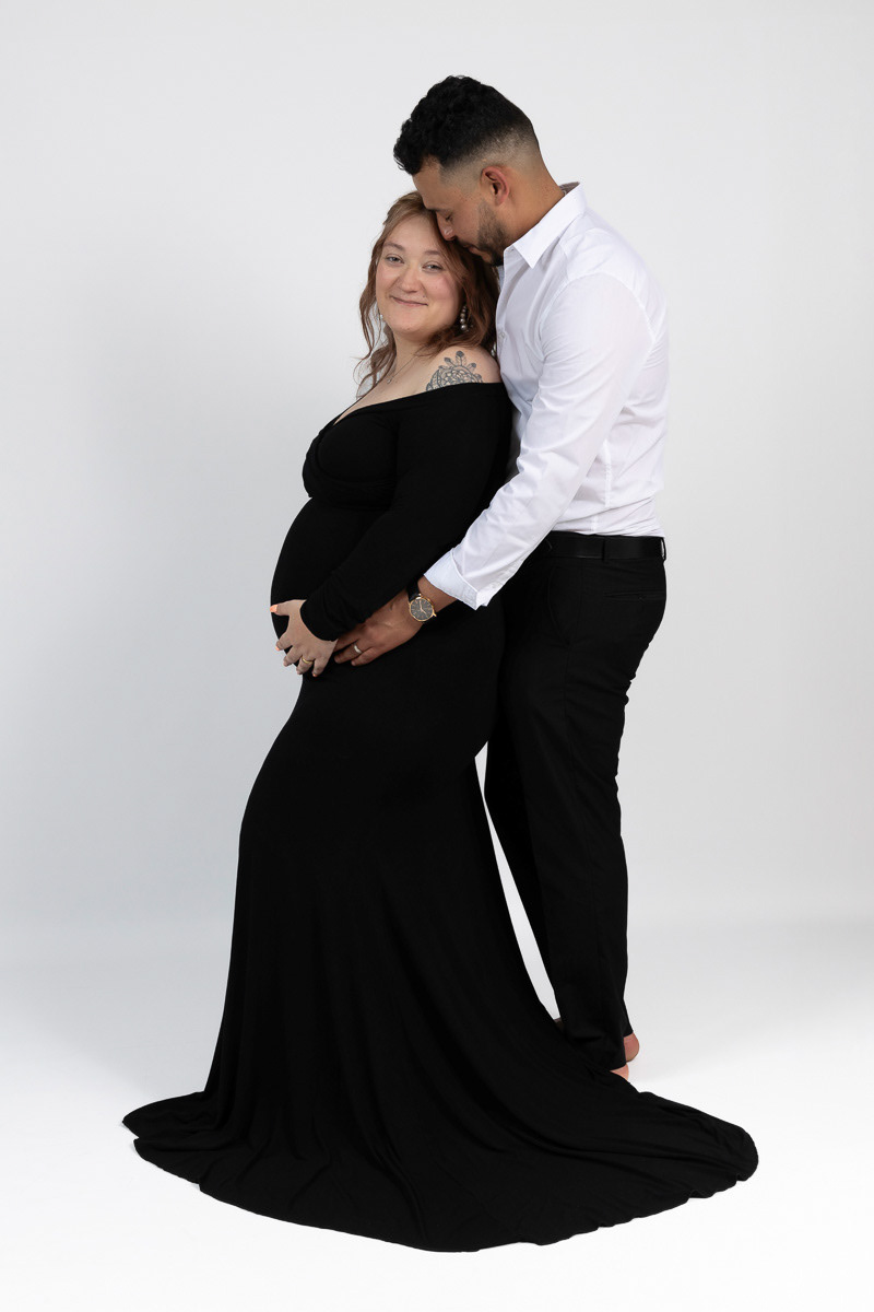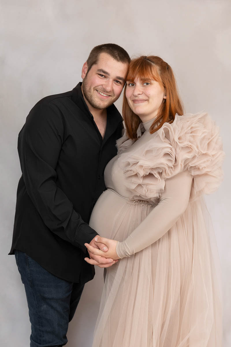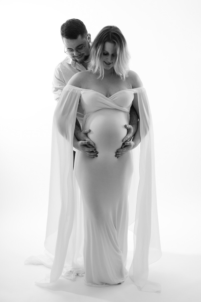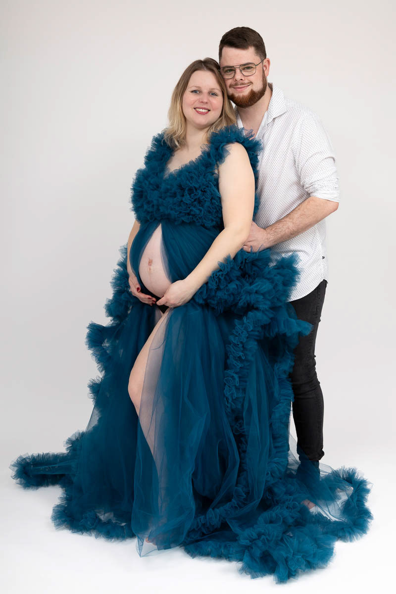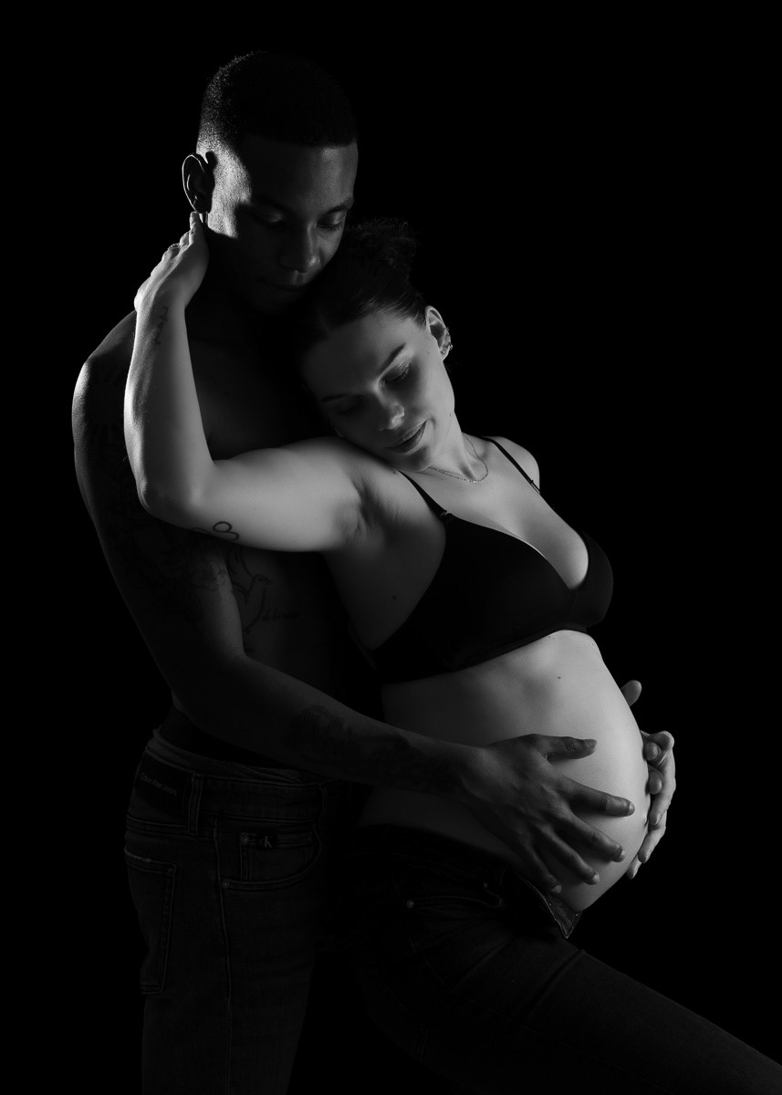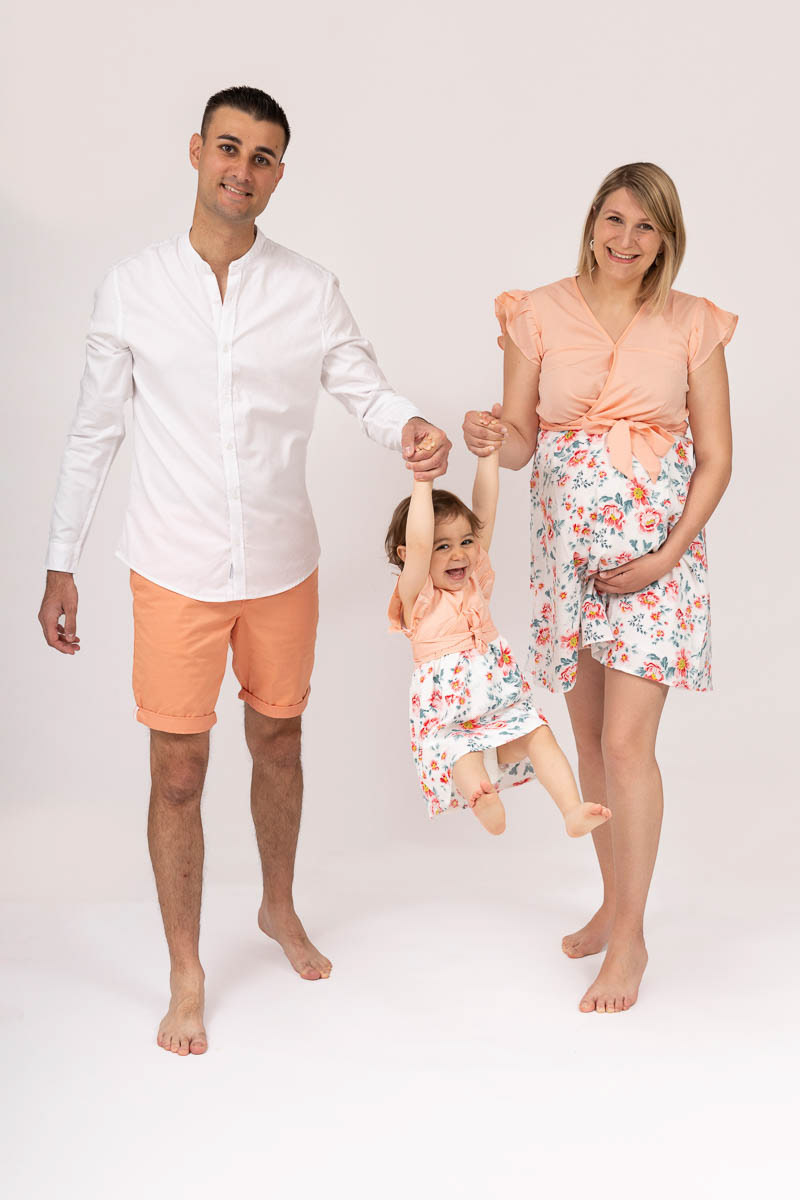Le forfait séance future maman comprend les portraits seule, en couple et avec vos enfants.
