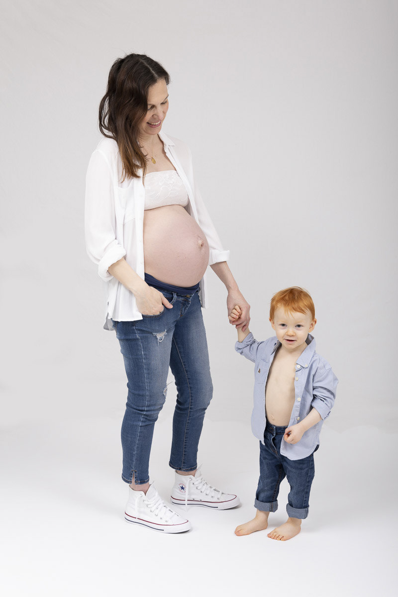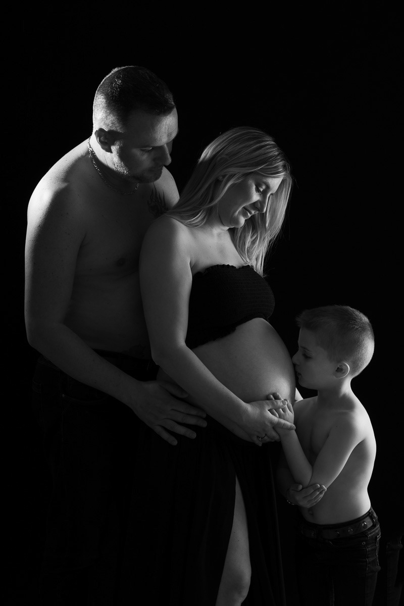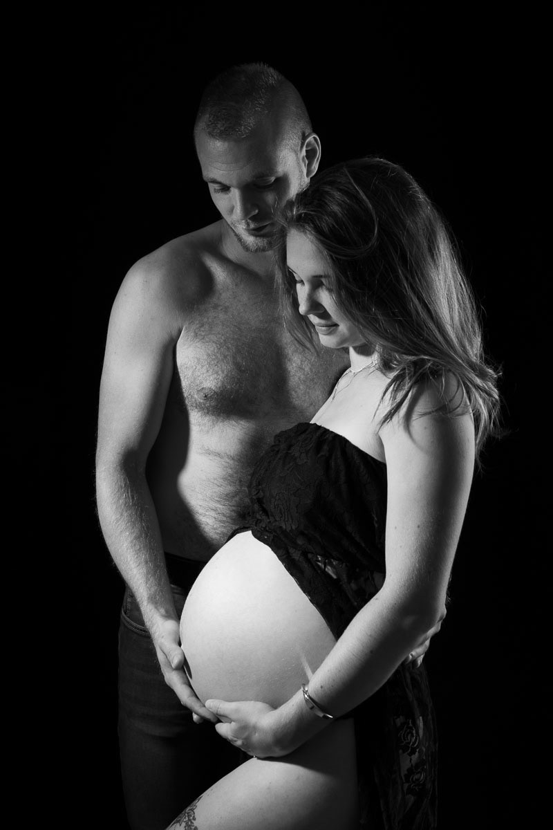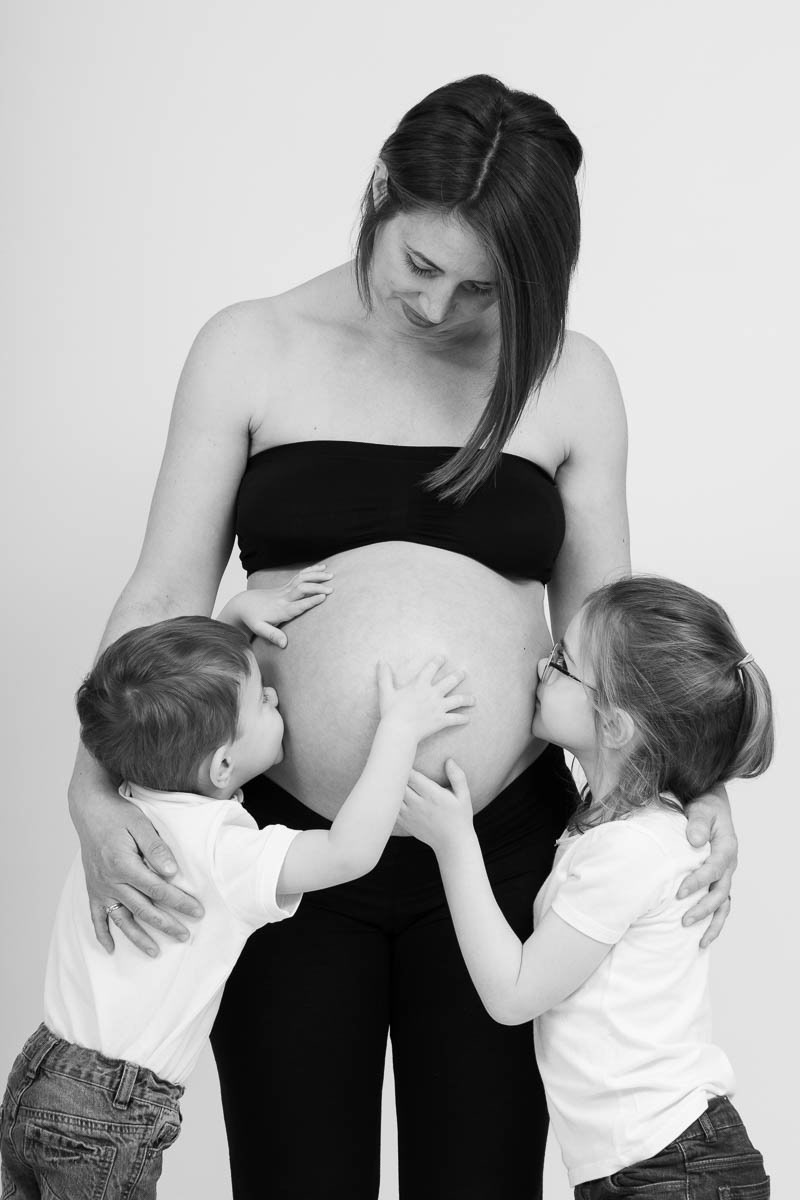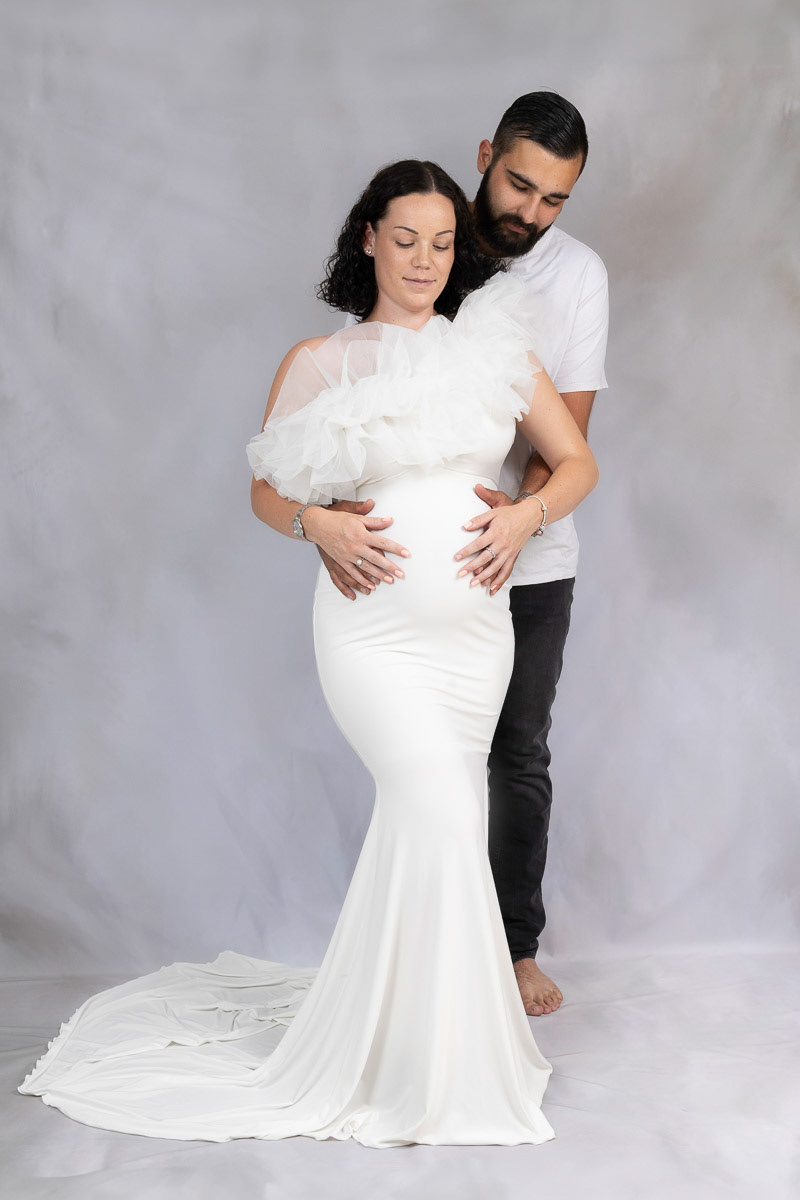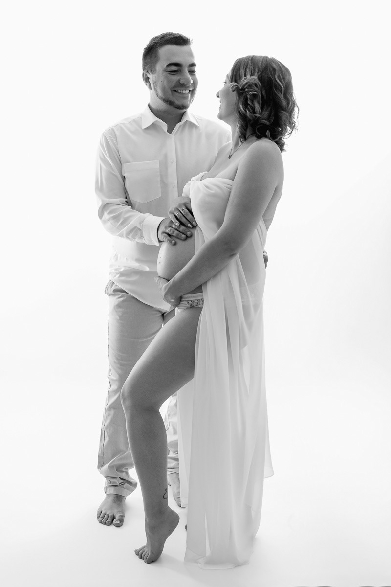 Le forfait séance future maman comprend les portraits seule, en couple et avec vos enfants.
