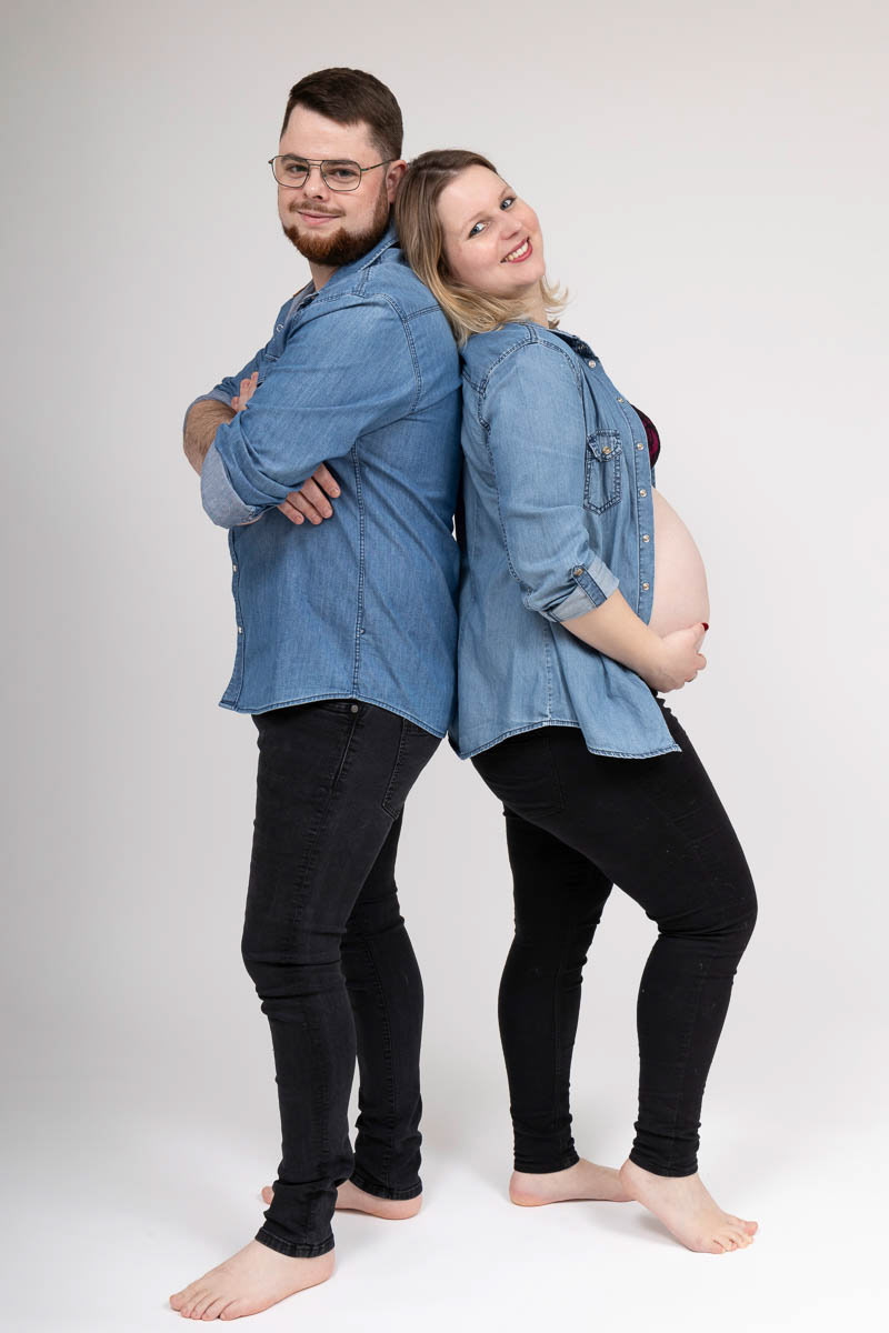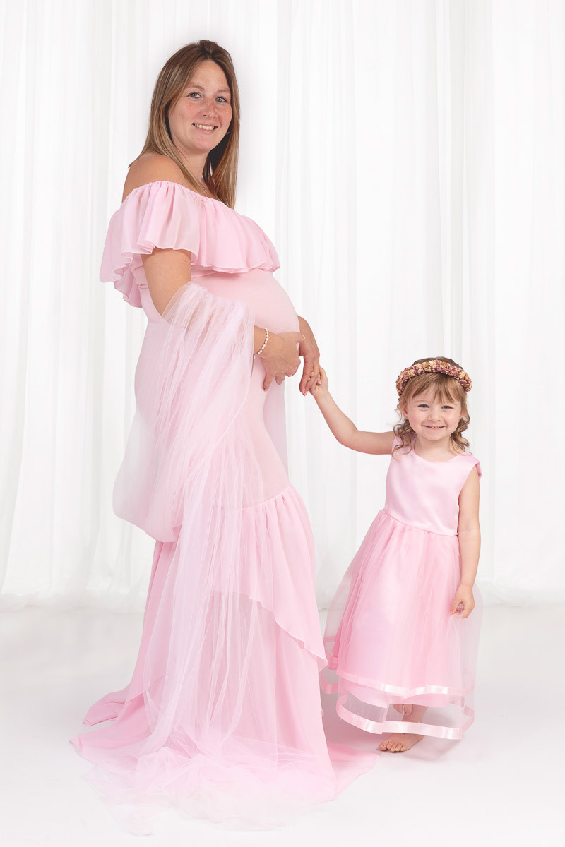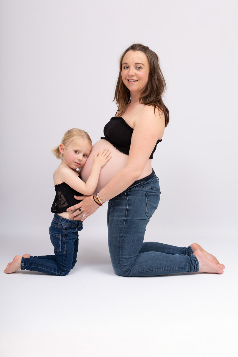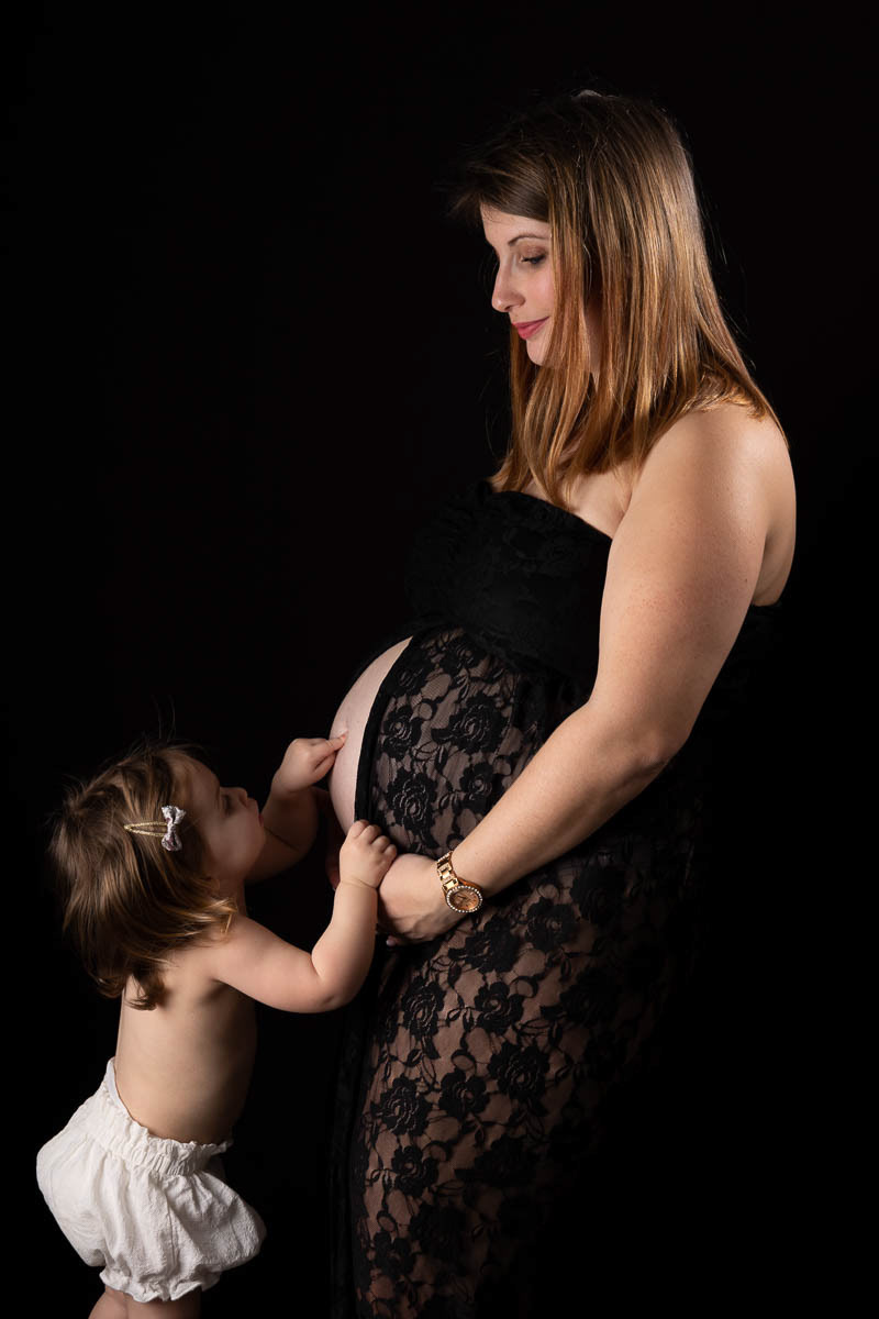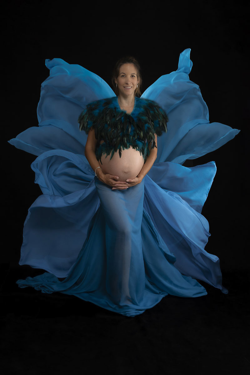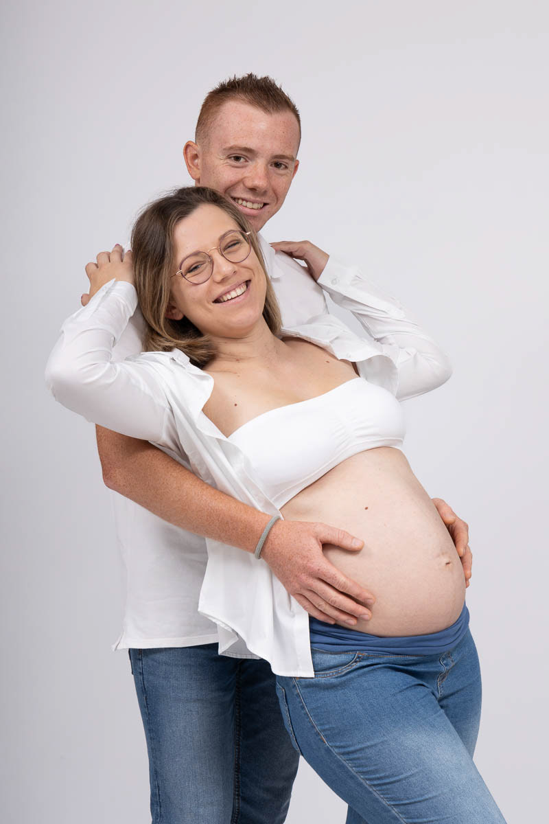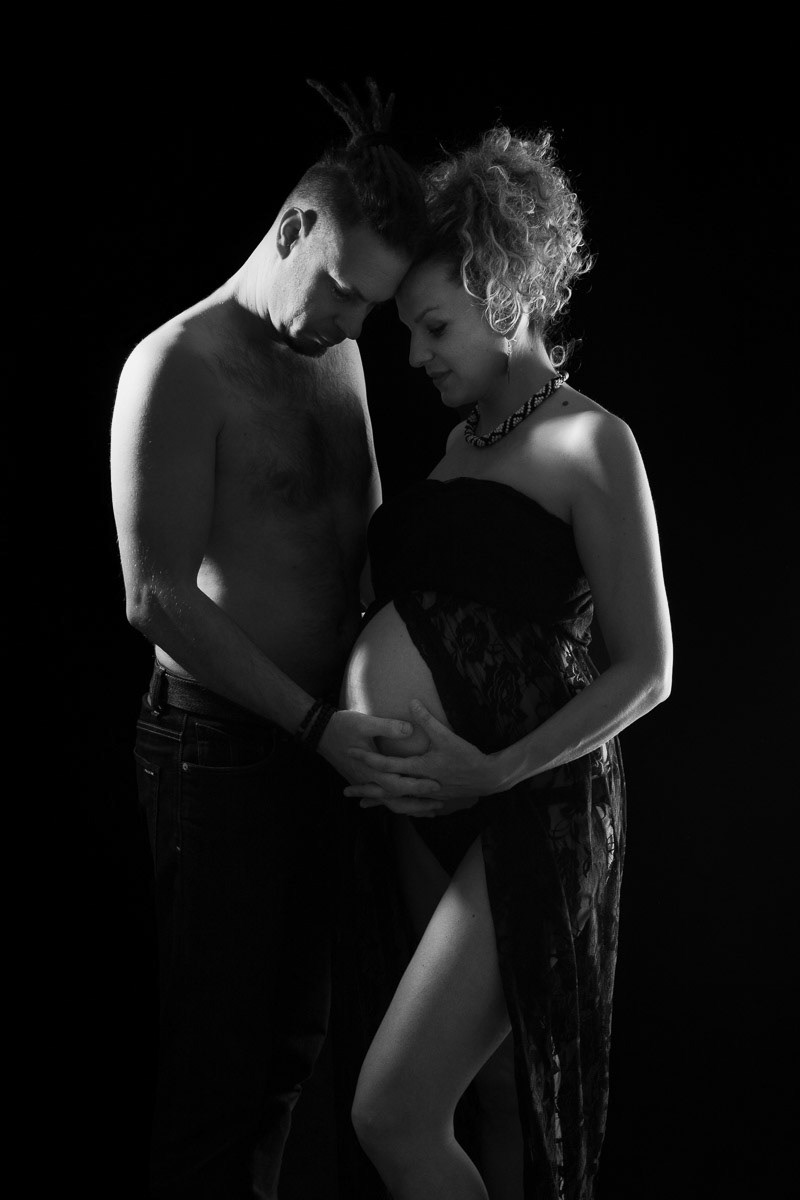 Le forfait séance future maman comprend les portraits seule, en couple et avec vos enfants.