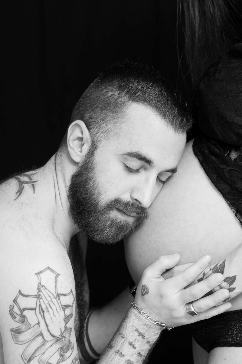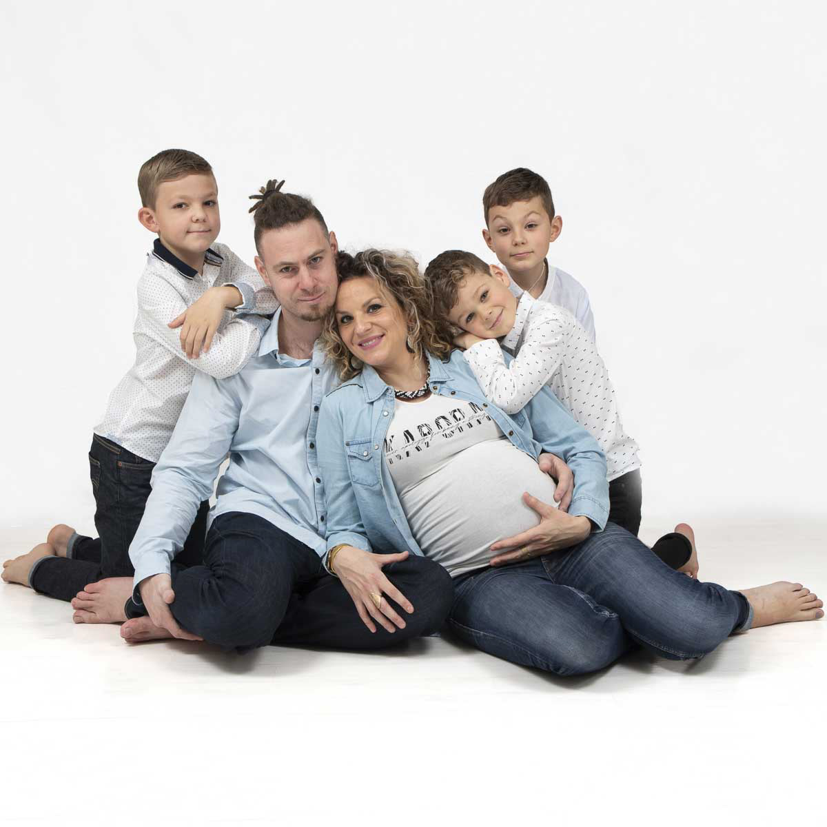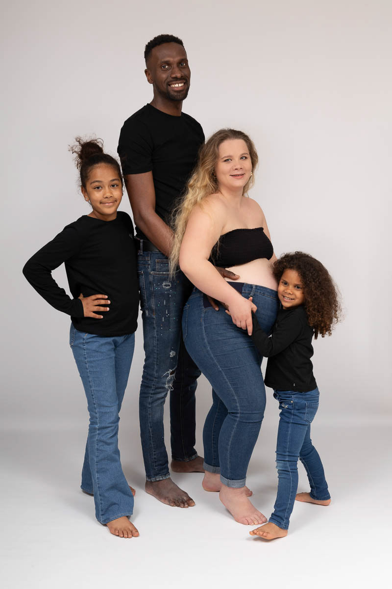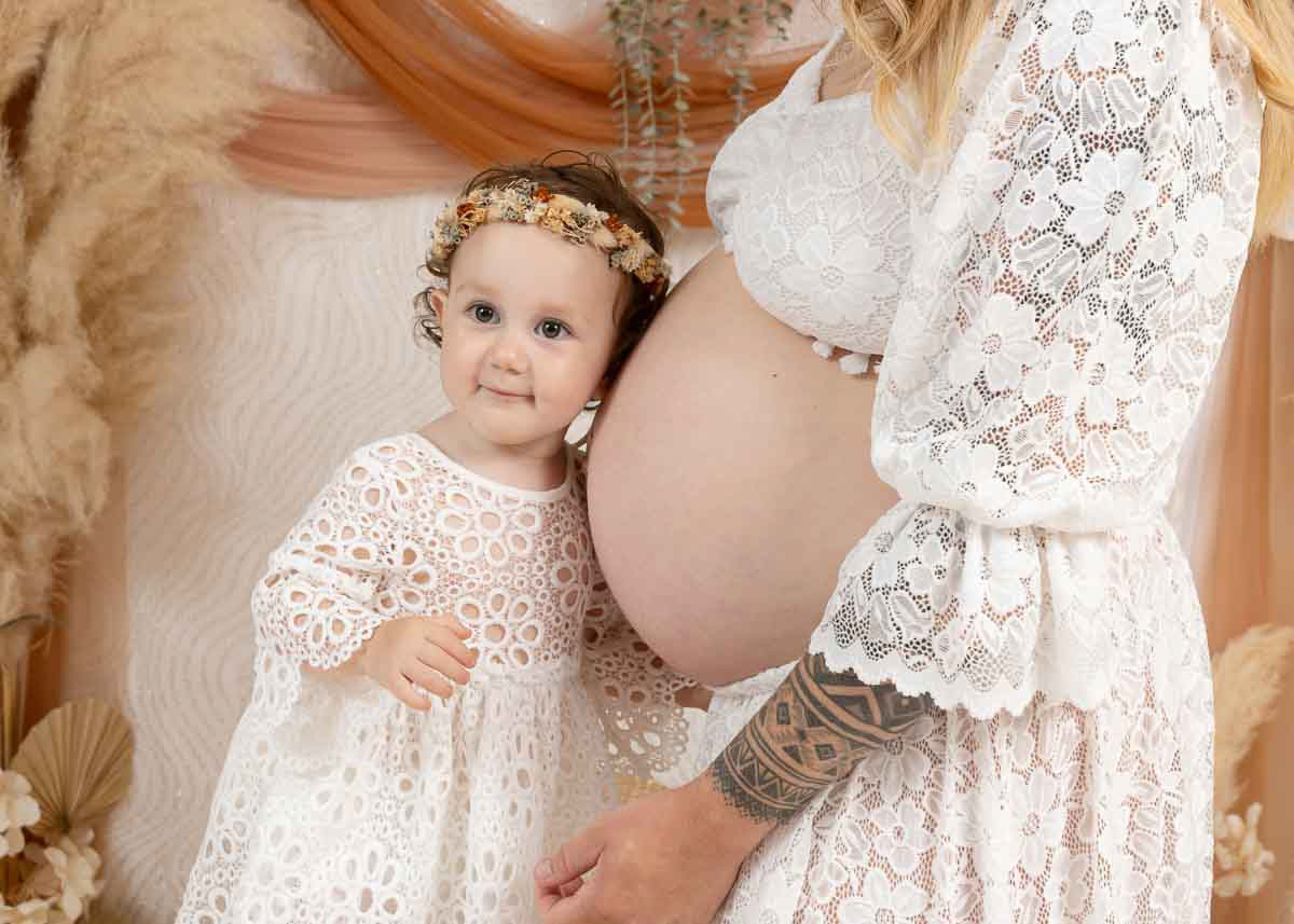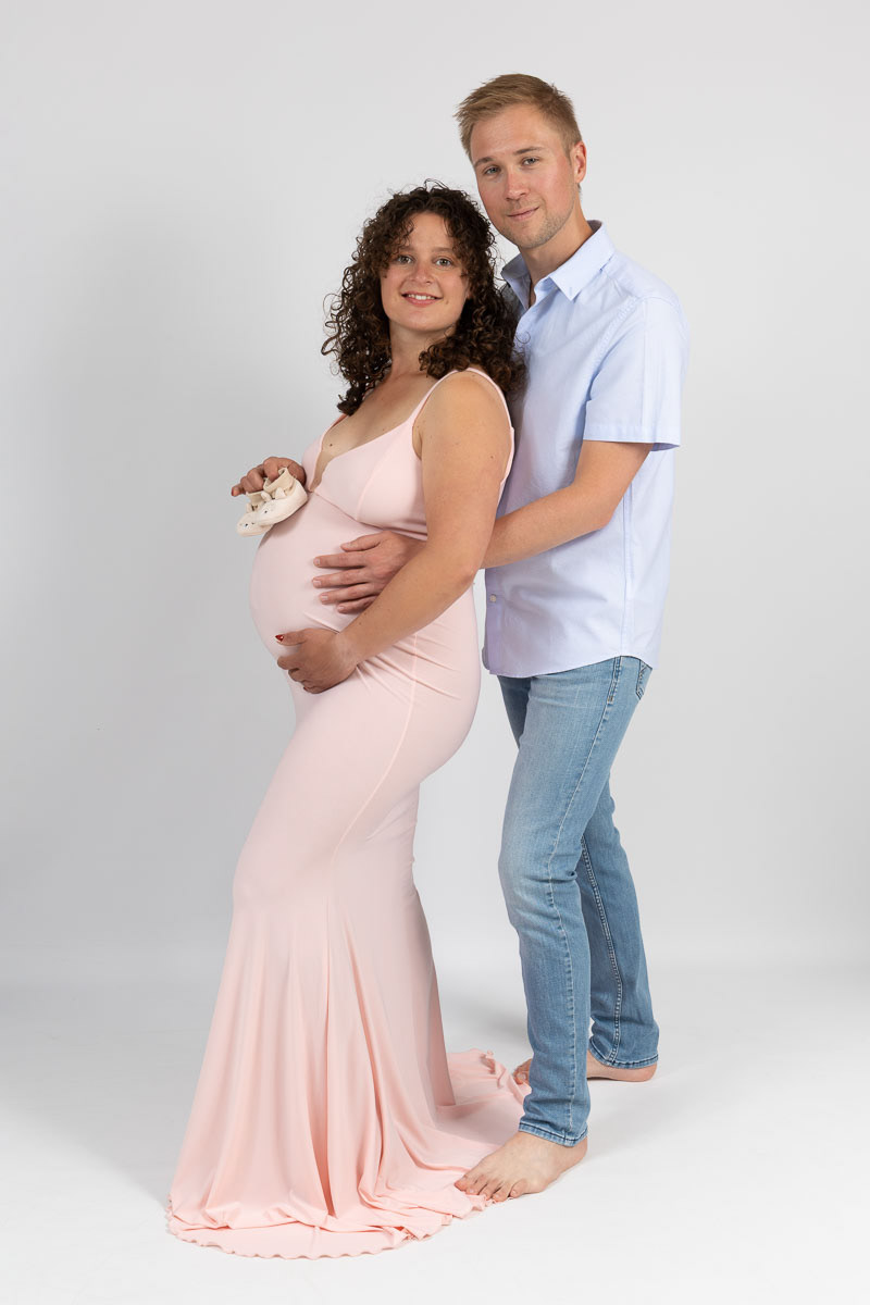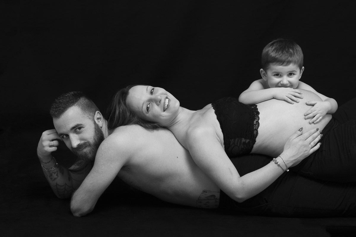 Le forfait séance future maman comprend les portraits seule, en couple et avec vos enfants.