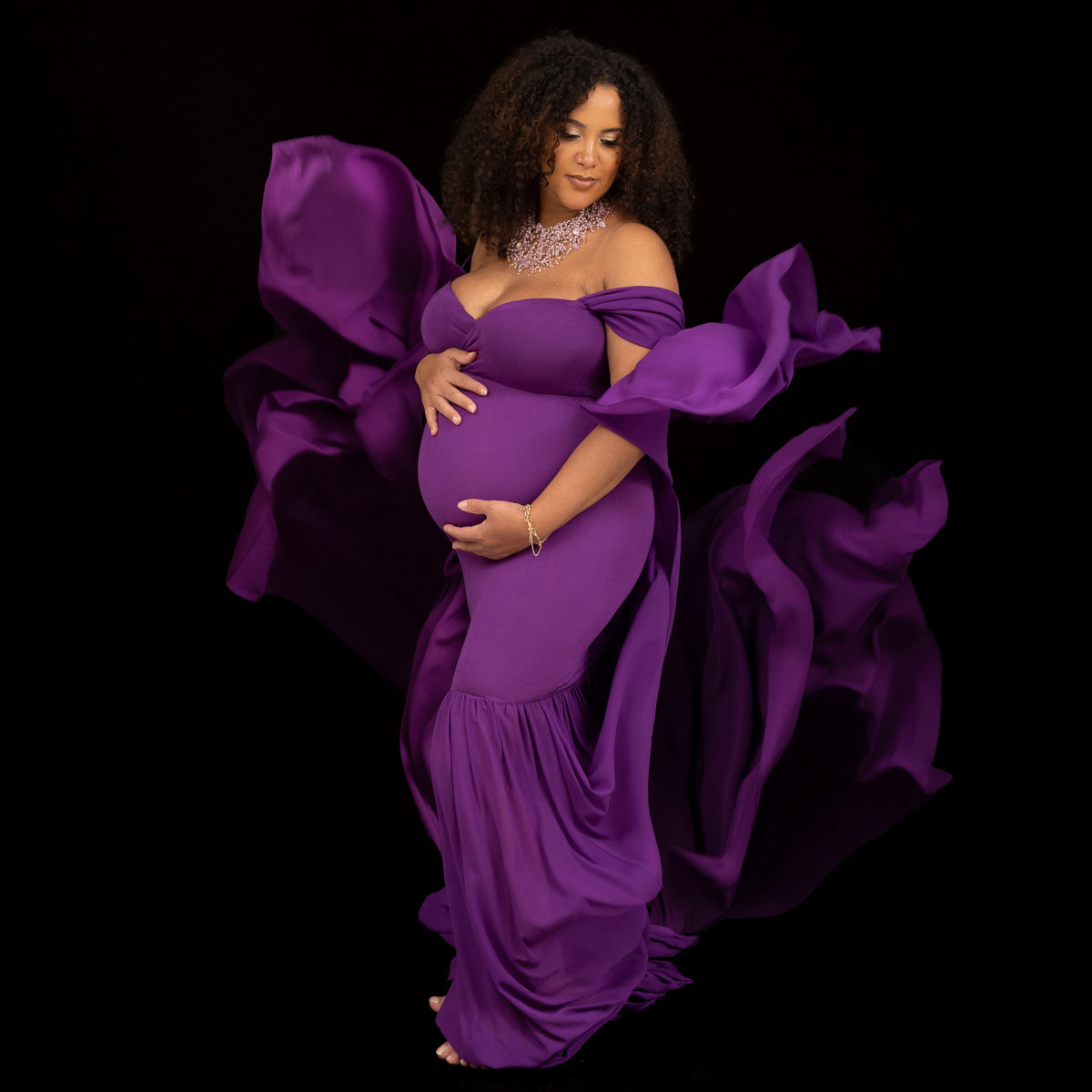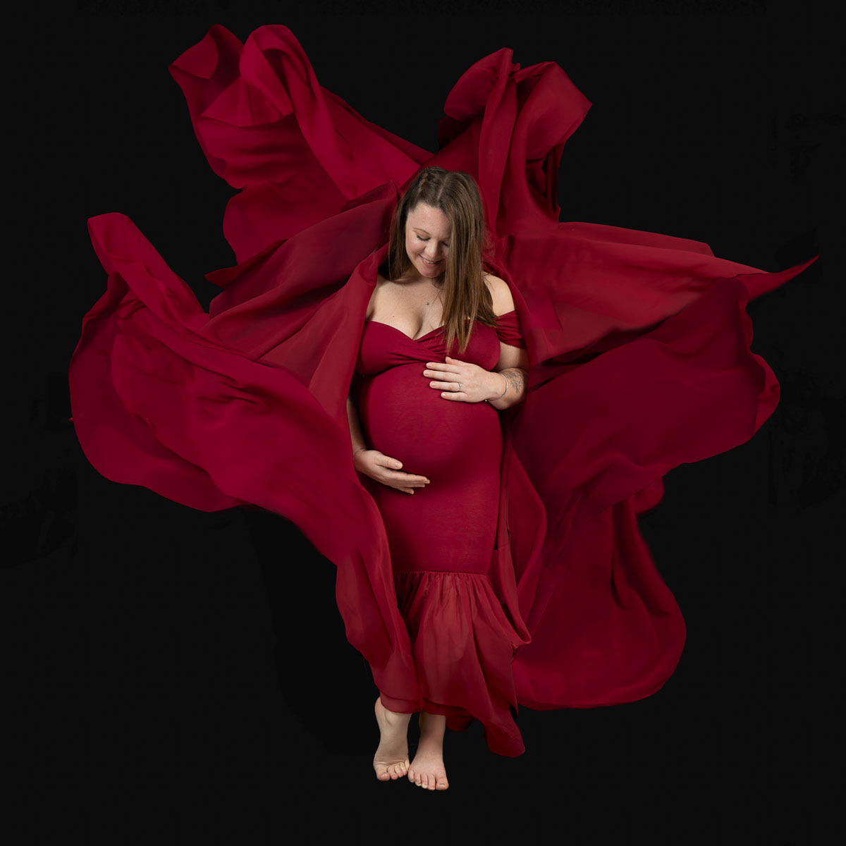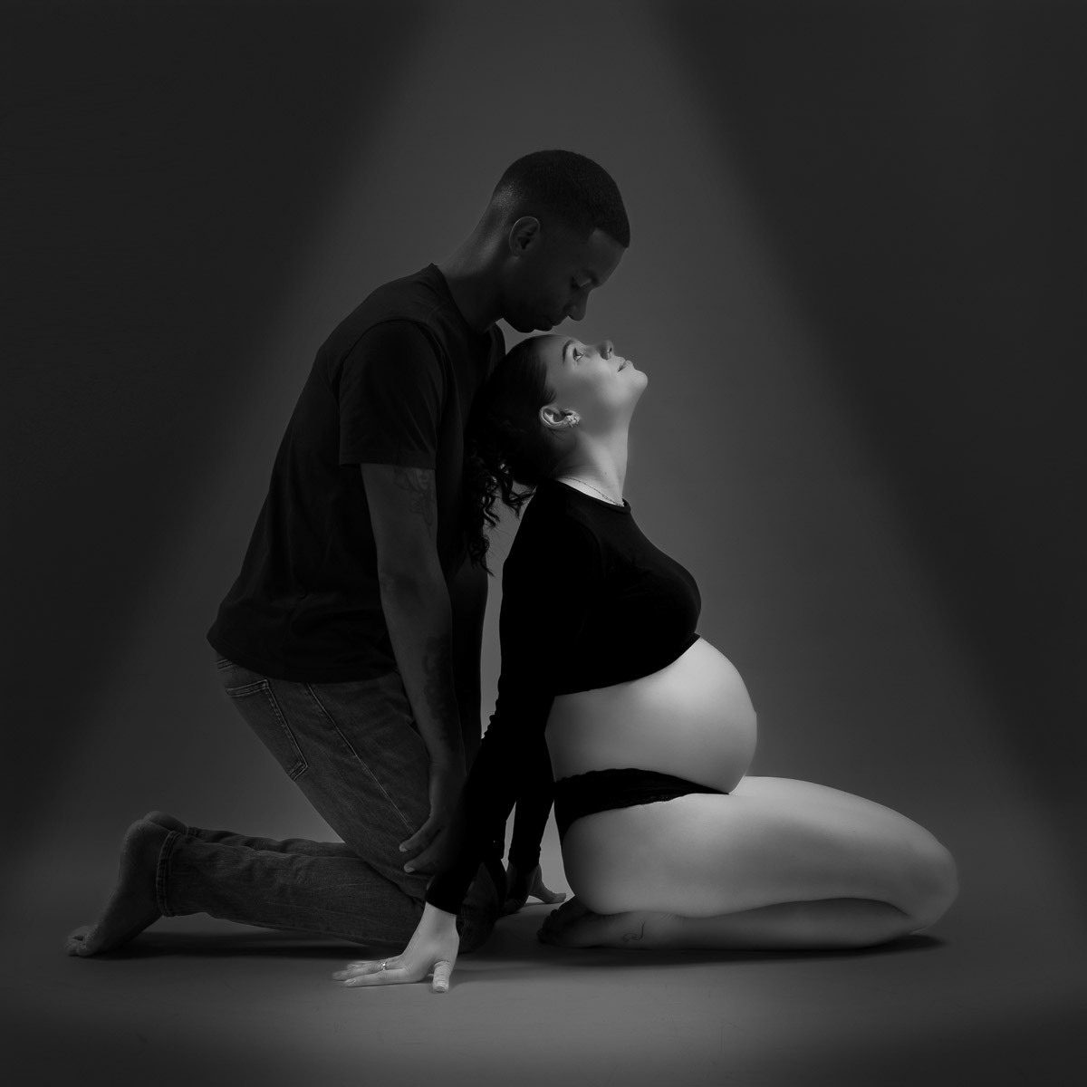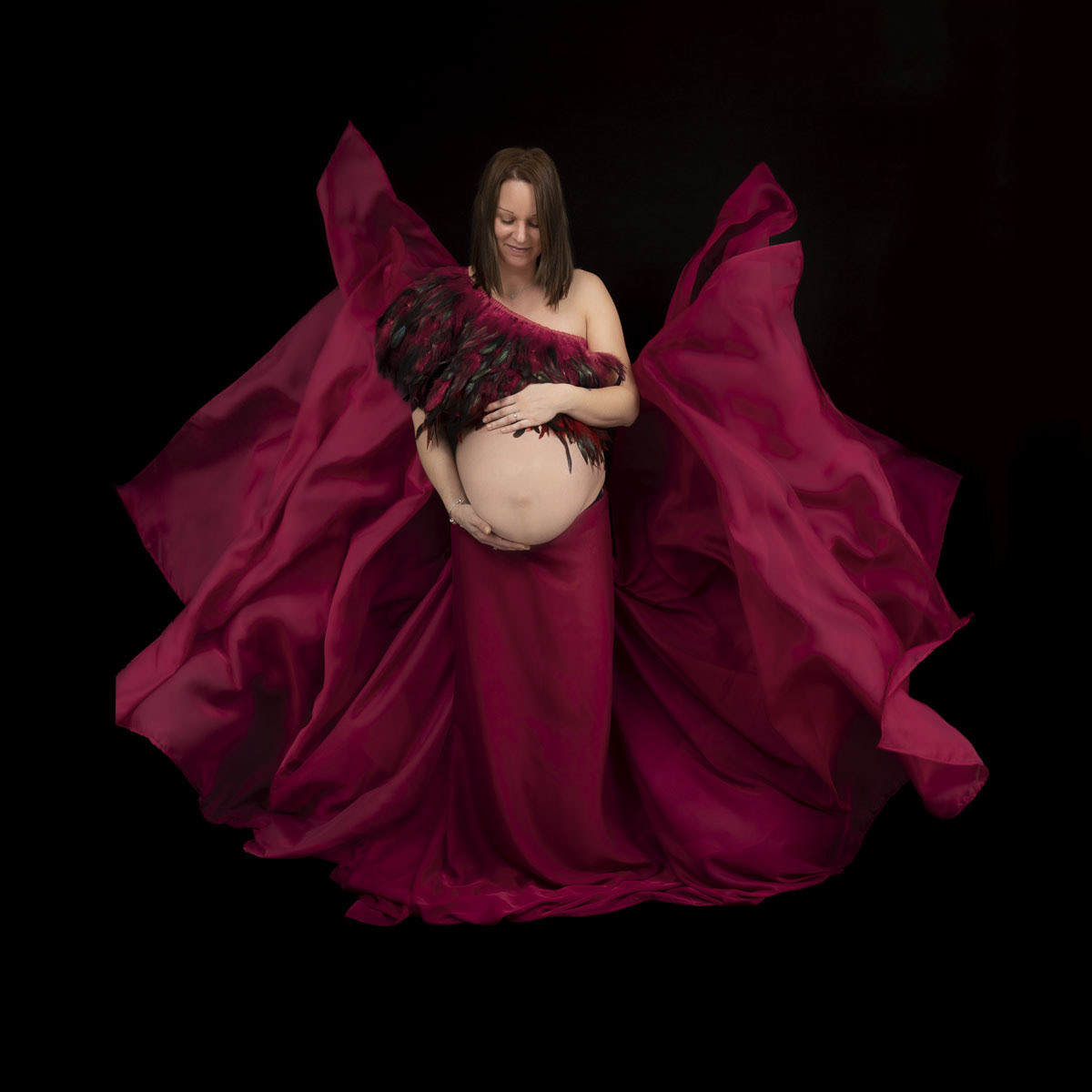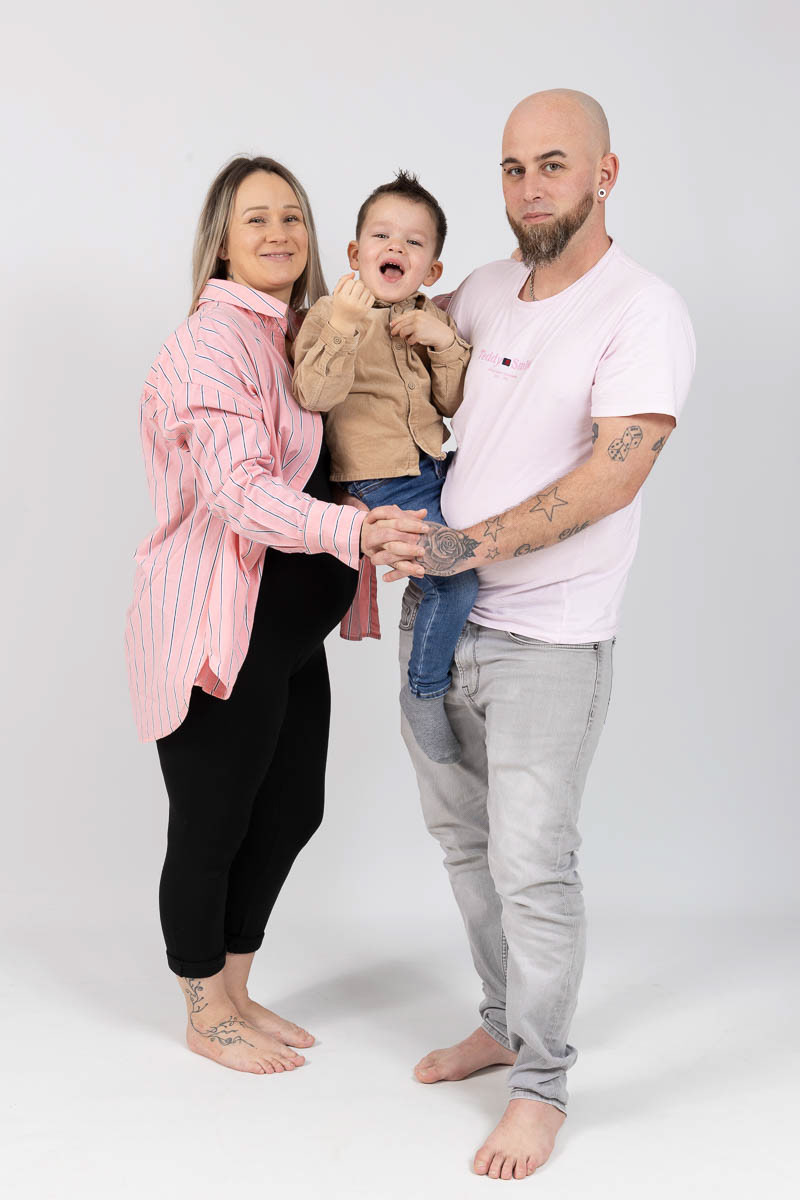 Le forfait séance future maman comprend les portraits seule, en couple et avec vos enfants.
