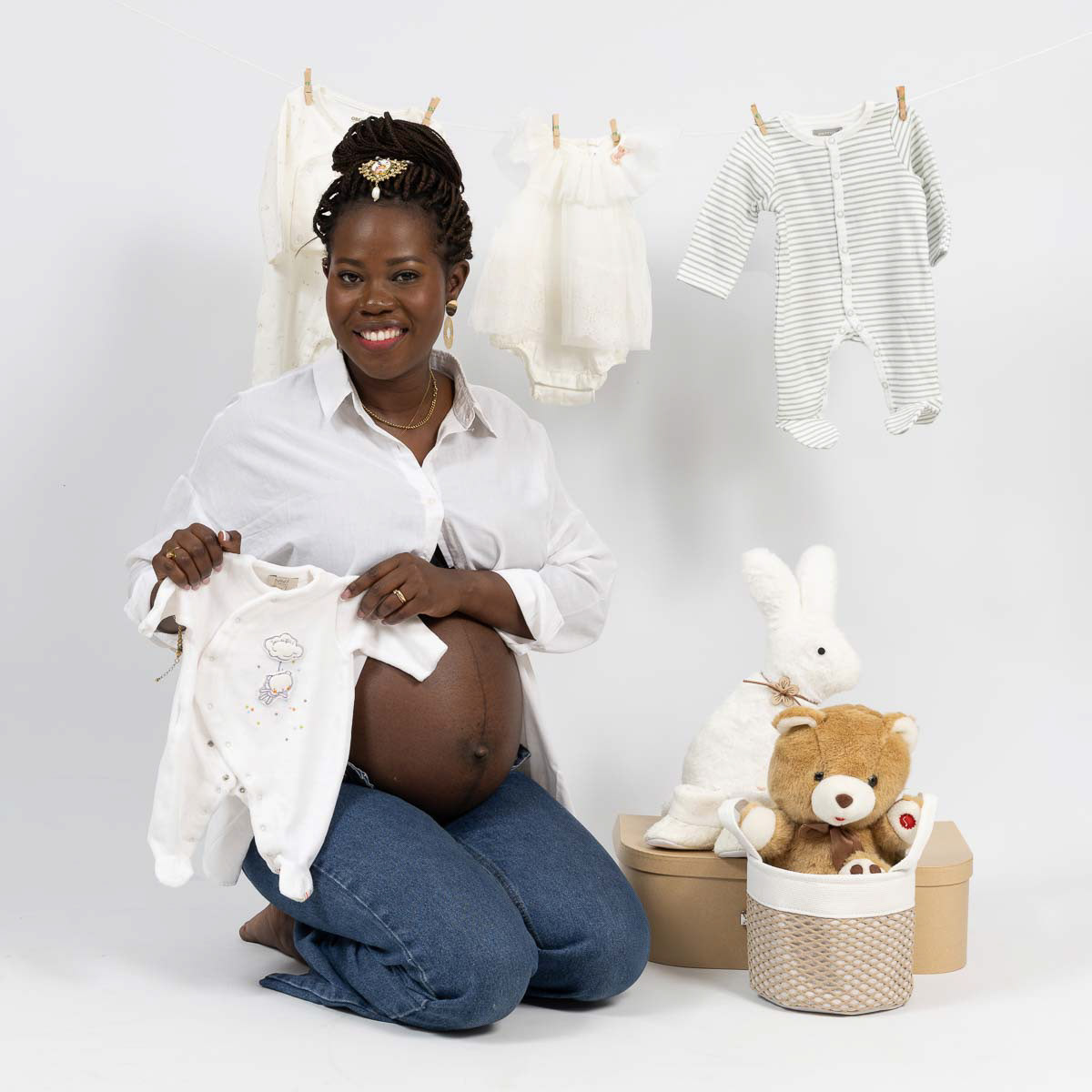 Parcourez la galerie pour choisir vos poses, décors, robes, tenues et accessoires avant votre prochain shooting grossesse.