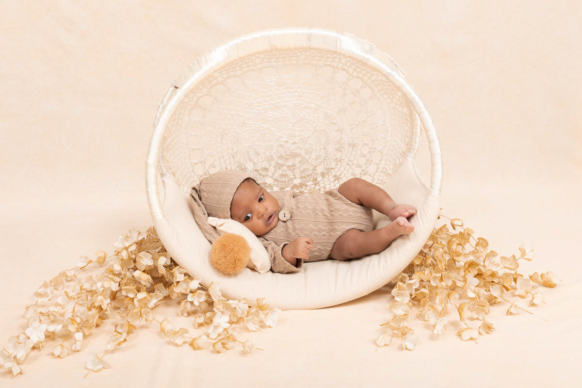 La séance naissance de votre bébé se fait chez moi dans le calme et l'intimité de mon studio photo.