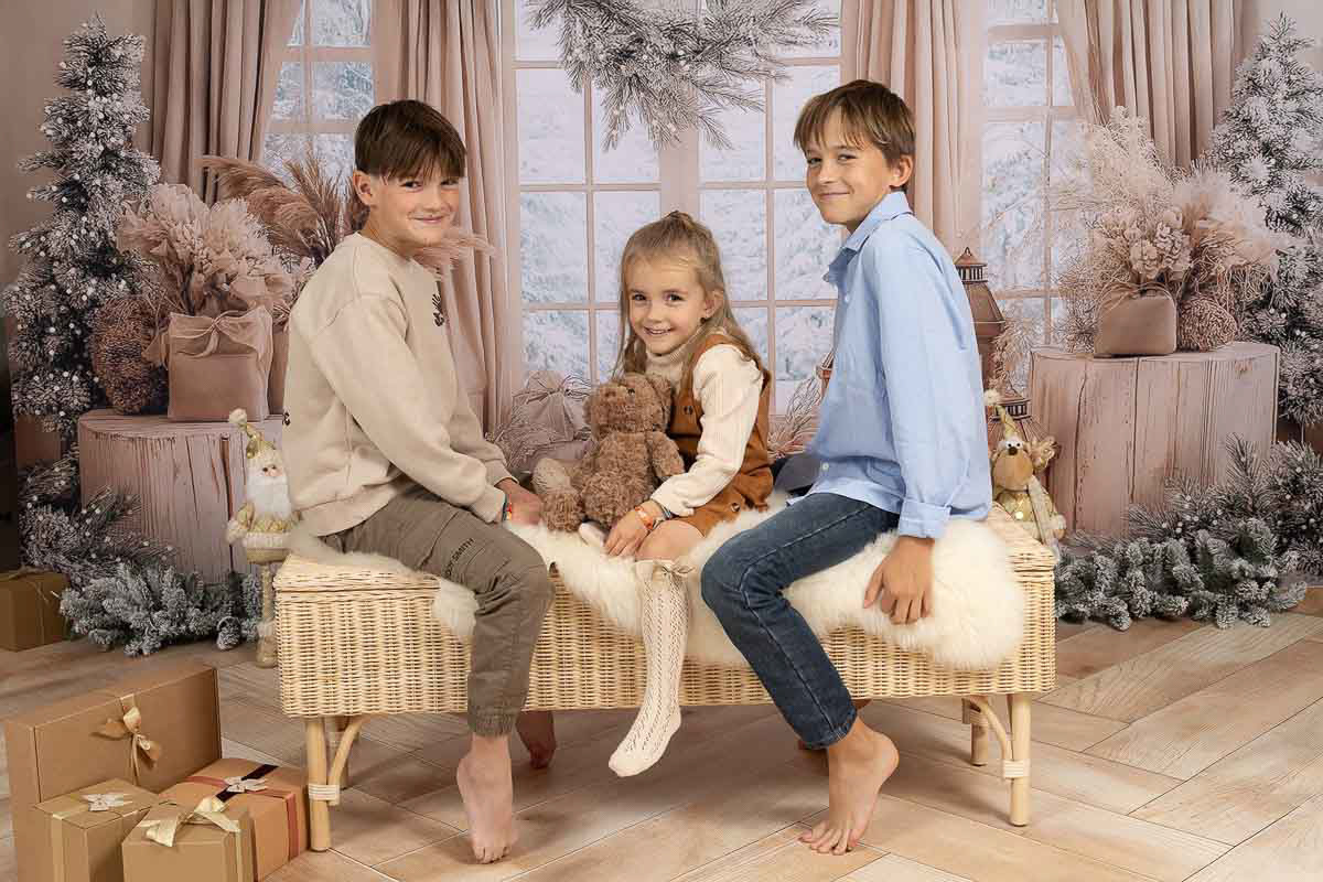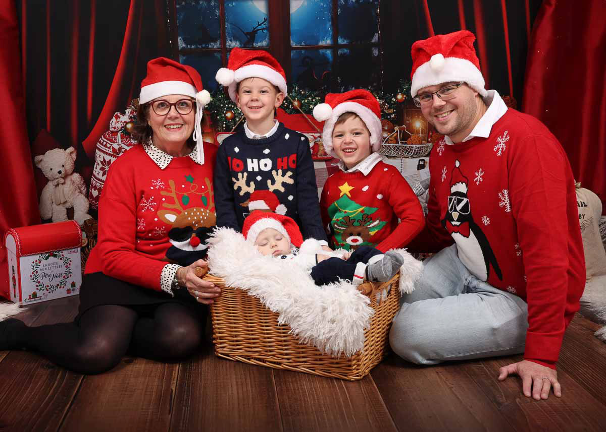 La séance photo noël de votre famille dure environ 30mn, elle se fait chez moi dans l'intimité de mon studio photo.