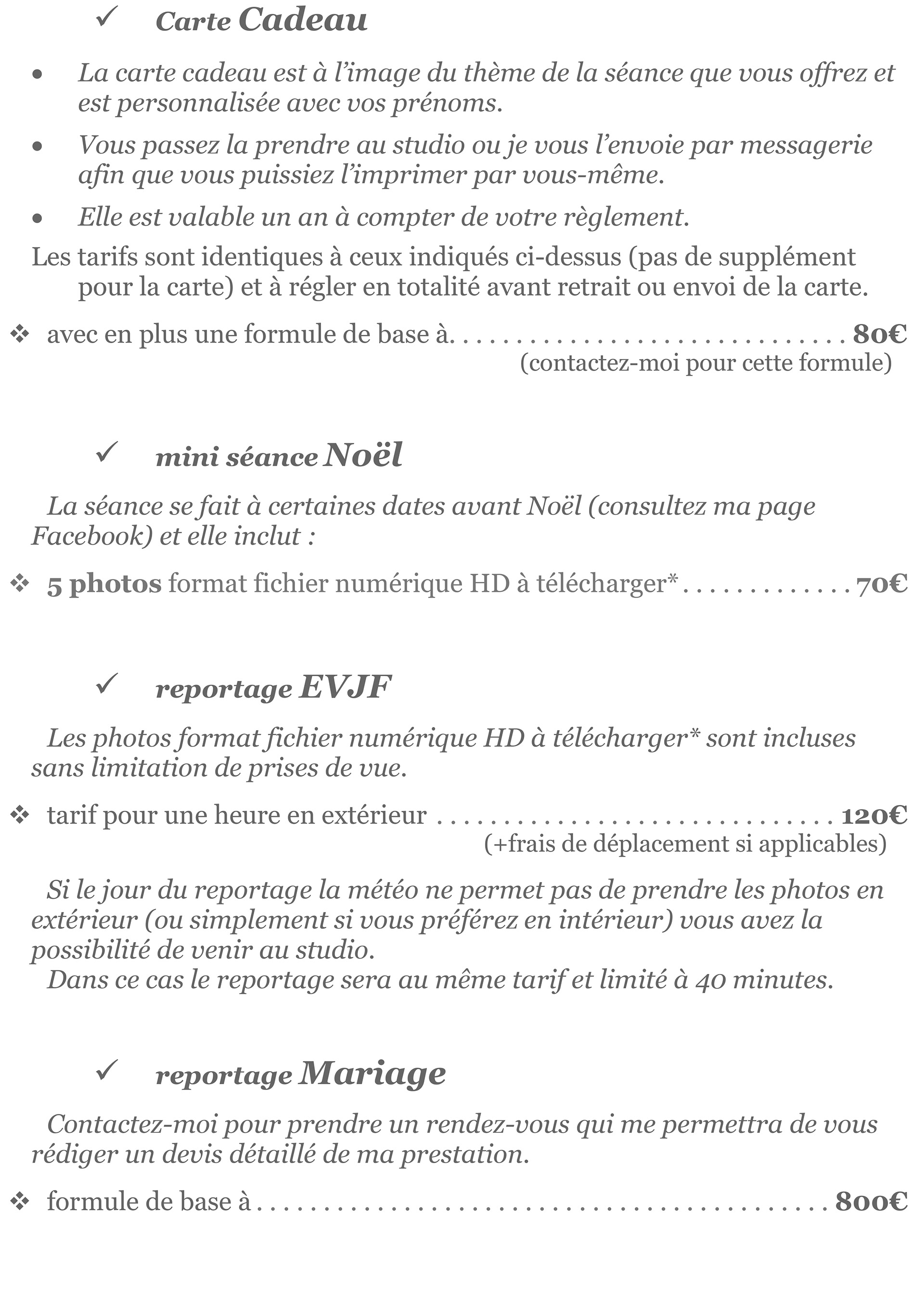 Tarifs 2026